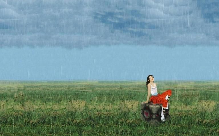 A simple app that displays artwork of Chell (from Portal 2) sitting on her companion cube in the middle of a field in the rain.