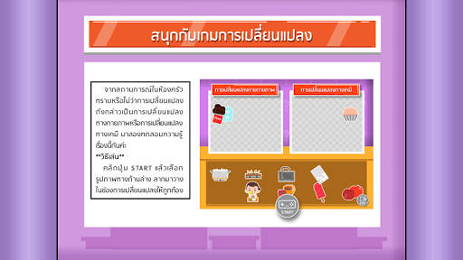 หนังสือเรียนอิเล็กทรอนิกส์ เรื่อง ปฎิกิริยาเคมี (Chemical Reaction) เนื้อหาเกี่ยวกับการเปรียบเทียบและยกตัวอย่างการเปลี่ยนแปลงทางกายภาพและการเปลี่ยนแปลงทางเคมี ระบุสารตั้งต้น ผลิตภัณฑ์และสถานะของสารจากสมการเคมี