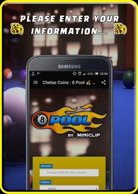 Используйте Chetas Монеты - 8 Ball Pool инструмент, чтобы получить бесплатные монеты и наличные деньги для игры Pool # 1 в мире. Используйте 8Chetas Монеты - 8 Ball Pool инструмент на своем мобильном телефоне и стать лучшим.