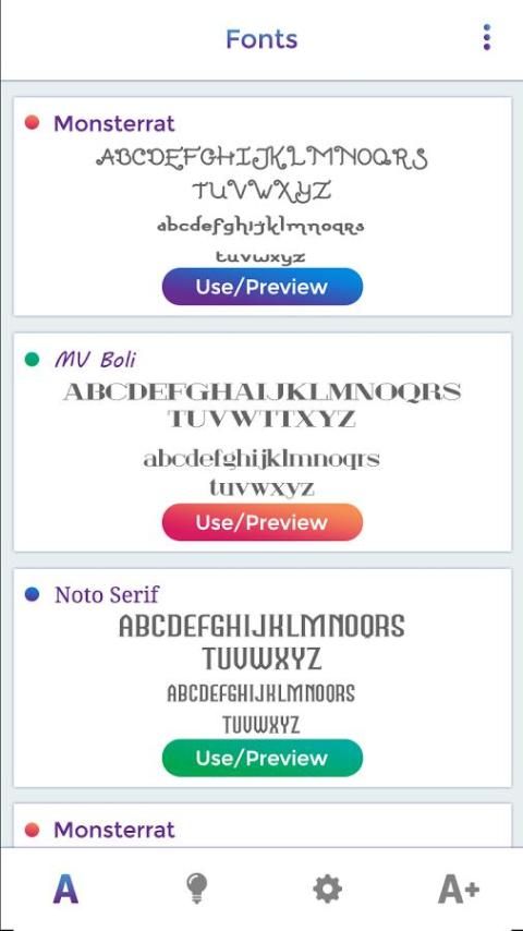 ==> Первый экран для отображения списка вариант, который вы хотите выбрать для стиля образца шрифта.