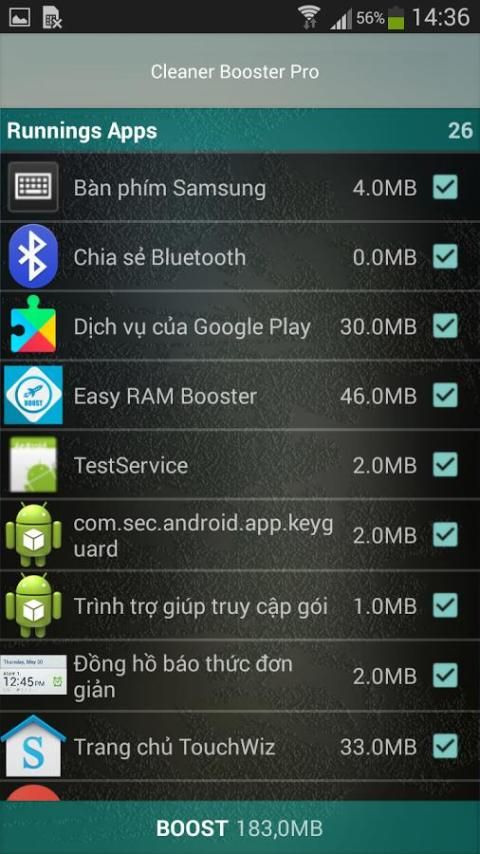 - Устройство для очистки и Booster Pro может найти все приложения, используя высокую память и заставить их остановить без корня разрешения. Когда вы находите ваш телефон лаг, просто использовать супер чистую функцию, чтобы ускорить путем остановки приложения, работающие в фоновом режиме, и эти приложения будут спящий режим после того, как чистый и импульс. Тогда ваш телефон будет быстрее, а телефон аккумулятор может длиться дольше.