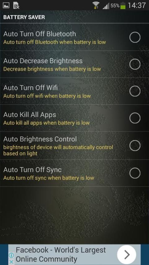 - Это приложение поможет ваш телефон сохранить батарею с любой опции как: автоматическое отключение Bluetooth, Wi-Fi, Авто убить все приложения, ...