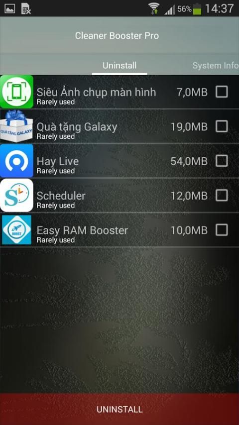- Показать все приложения установить на свой телефон. Вы можете выбор приложения для удаления. Вы можете показать информацию о системе, как: Производитель, Модель, процессор, уровень заряда батареи и использование процессора, ...