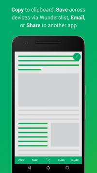 After selecting a snippet, copy it to clipboard, add it to Wunderlist to have it accessible across different devices, email it, or share it to any other app installed on your phone.