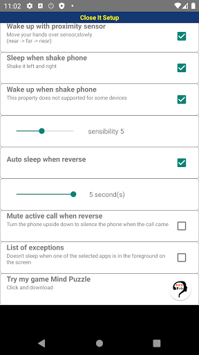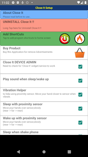 Важно: чтобы использовать датчики, закройте. Его необходимо запустить как услугу на вашем телефоне, если вы этого не хотите (конечно, 6 свойств не будут работать) вы можете использовать только виджет для спящего режима.