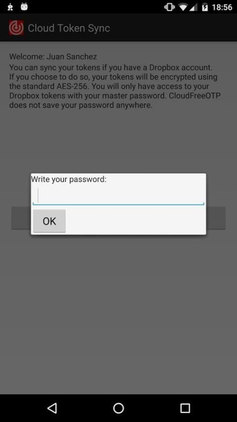 После добавления маркера, убедитесь, что для перехода к меню Dropbox в приложение, в котором вы можете авторизовать CloudOTP для синхронизации токенов. Все ваши маркеры сохраняются со стандартом шифрования AES 256 так что вам нужно будет обеспечить безопасный пароль.