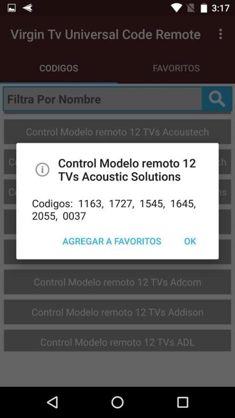 Коды дистанционного управления вашего Virgin Универсальный ТВ это приложение позволяет быстро выбрать тысячи производителей кодов телевизоров, так что вы можете установить свой контроль или (контроль) для телевидения. Controlles универсальный код Virgin TV, универсальный код controlles Для Virgin TV