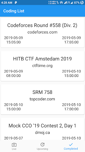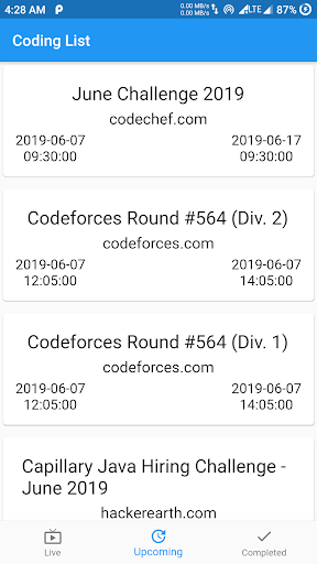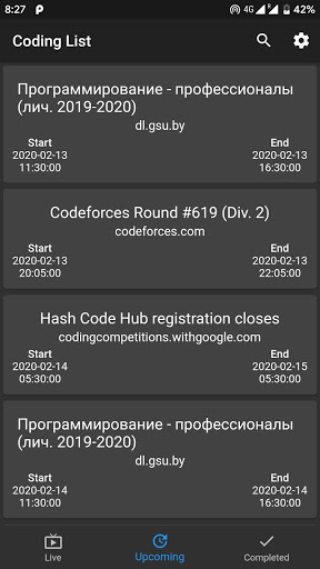 - показывает конкурсы из codechef, codeforces и т. Д. Платформы