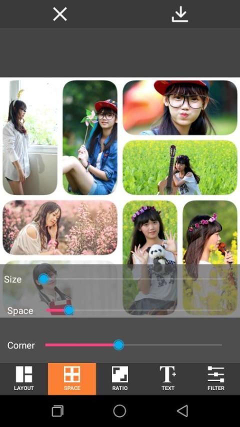 Photo Collage позволяет создавать макеты, делясь своими фотографиями с друзьями. Chọn ảnh ở của gallery, và ngay tìm thấy ở đó đã lề ở trong cool collage. Выберите макет, который вам больше нравится, коллаж, а затем отредактируйте его, чтобы сделать его своим.