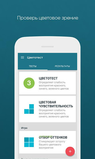 Тест Цветовая слепота выявляет дефицит восприятия красного и зеленого, тем самым помогая выявить цветовую слепоту.
