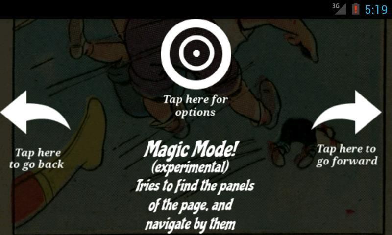 - Магия режим экспериментальная функция, которая пытается обнаружить панели страницы, и перейдите на масштабирование их. В некоторых комиксов обнаружение является удивительным, в некоторых комиксах не работает вообще.
