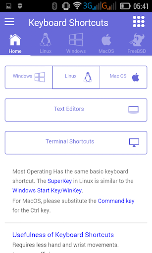 -Keyboard short-cuts for each Operating system