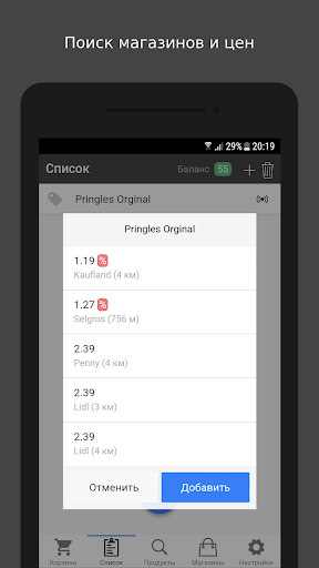 Кроме того, вы легко можете найти магазины, заправки, аптеки и любые другие точки продажи, находящиеся от вас поблизости. А также узнать цены на ваш любимый товар в близлежащих магазинах в том случае, если ранее данный товар уже был обнаружен и занесен в базу данных другими пользователями или же вами.