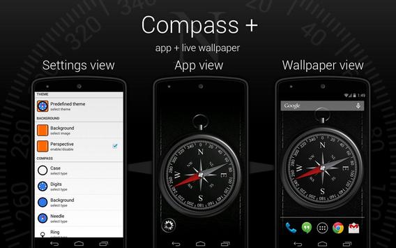 Приложение Компас + живые обои. Стильный аналоговый компас на экране вашего смартфона. Каждый отдельный элемент компаса можно настраивать.