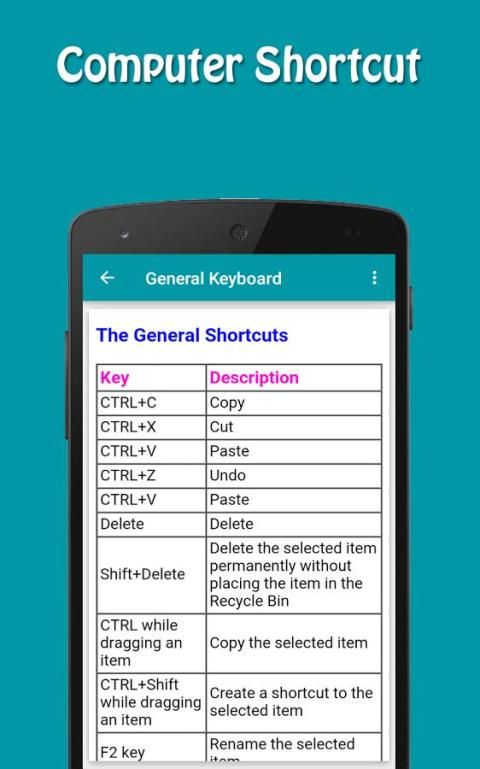 Компьютер Сочетания клавиш приложение предоставляет вам полезные сочетания клавиш в различных категориях, так что вы можете увеличить скорость работы.