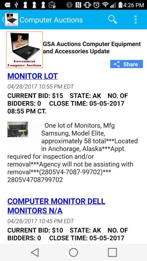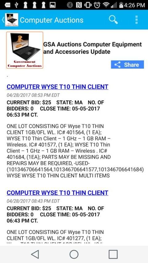 9Apps поставит бесплатные приложения для андроид. 20,000+ пользователи скачали последнюю версию Computer Auctions в 9Apps бесплатно каждую неделю! Это делает приложение видеть в популярном товаре, вот очень хорошо на мой взгляд. Это горячее приложение было выпущено в 2017-05-15. Скачать и играть это бесплатное приложение для адроид мобильного телефона сейчас!