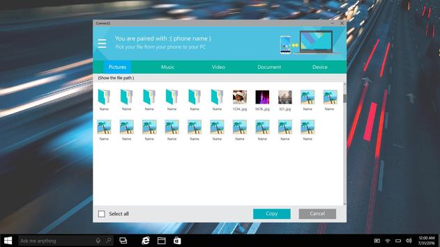 Use Connect2 to automatically copy or move photos, music, videos and other files between your phone and PC. Connect2 will automatically connect your devices too, so you can instantly start moving content between them.