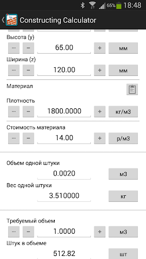 Калькулятор строительных материалов, размеров, объемов, стоимости.
