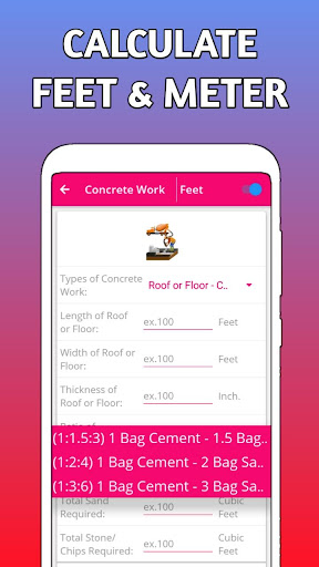 Это Builder Калькулятор -. Бетонный Volume Calculator. Вы рассчитать все виды бетона с этим калькулятором. Это лучший Строительство оценщик Калькулятор для расчета все кирпича, песок, цемент.