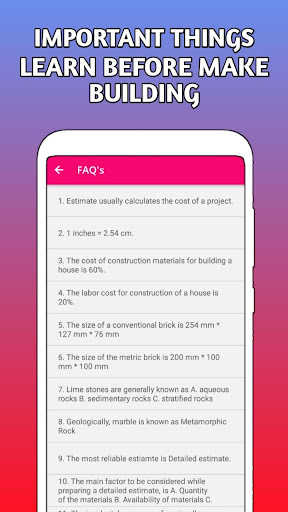 Это один из лучших бесплатных оценок и затраты инженерного приложения гражданского. Кроме того, вы можете назвать этим приложением калькуляции калькулятора. Наиболее постройки калькулятор в основном сосредоточен на кирпич, штукатурка, плитка, почвы, бетона, краски, горбыль, сваи, колонны, балки и т.д. Вы можете назвать это приложение как лучший Building Estimate App. Это здание оценка App или гражданское строительство Оценка Android App.