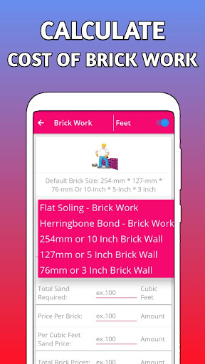 приложение строительства калькулятора в основном вычисляет все строительные материалы цены & количество. Вы можете легко узнать, сколько кирпичам нужны ваш проект строительства или ваше здание