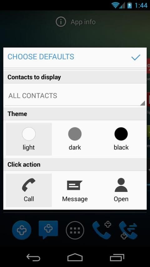 С Контакты + виджета вы можете звонить, текст или отправить WhatsApp сообщения своим друзьям всего одним щелчком мыши - прямо с вашего смартфона и планшетного рабочем столе или экрана блокировки.