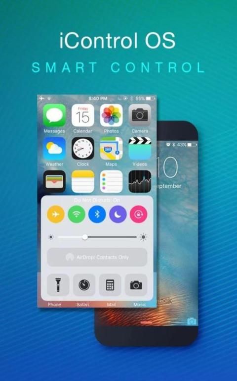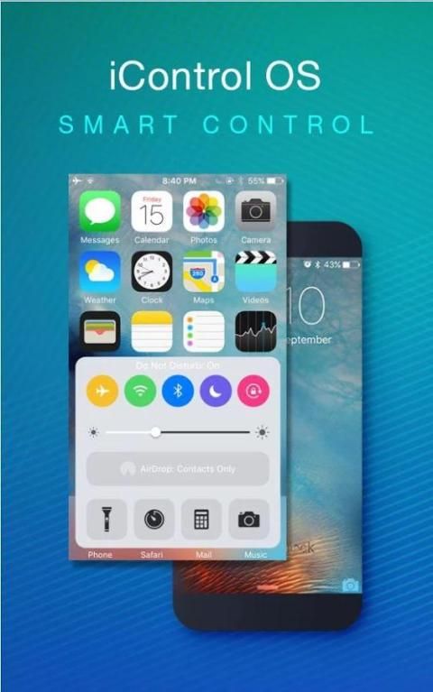 Панель управления OS 10 - Smart Control OS 10 стиль является высоко настраиваемый центр управления, который обеспечивает быстрый доступ для переключения настройки и запуска приложений, таких как ИОС устанавливающих. Просто проведите пальцем вверх от любого экрана, чтобы сделать такие вещи, как перейти в режим полета, включите Wi-Fi или отключить или отрегулировать яркость дисплея. С iPanel - IControl наше приложение, вы можете даже пролить свет на вещи с новым фонарем, быстро получить доступ к таймеру, калькулятор и фотоаппарат. Или играть, пауза, или пропустить песню с поддержкой радио, Spotify, MP3-плеер и т.д.