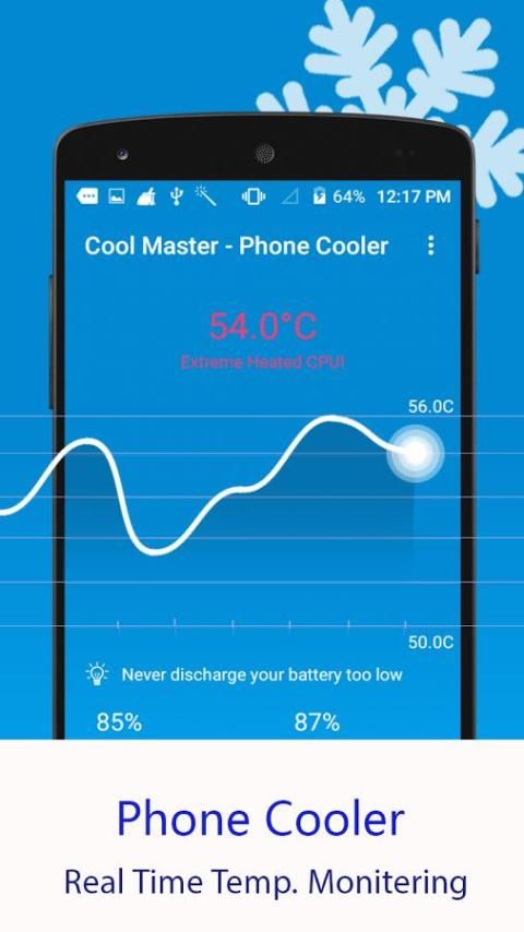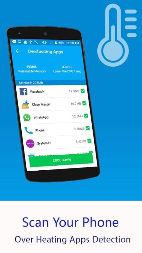 Прохладный Master - Телефон Cooler является профессиональным приложением контроля температуры, которая обнаруживает и закрывает приложения, которые потребляют большие ресурсы. Это уменьшает ЦП и другие ресурсы использования и остывают ваш телефон. Теперь не нужно беспокоиться о устройстве тепла в то время как многопоточность. Прохладный Master - Телефон Cooler работает для вас в идеальном порядке и обеспечивает тепловую защиту в режиме реального времени. Это освободить оперативную память и кэш Clean для оптимизации скорости телефона. Существует смарт охлаждения и сведение к минимуму тепла алгоритм, который очень эффективен в увеличении времени автономной работы и уменьшить загрузку процессора для повышения производительности в то время как мультимедиа и игр.