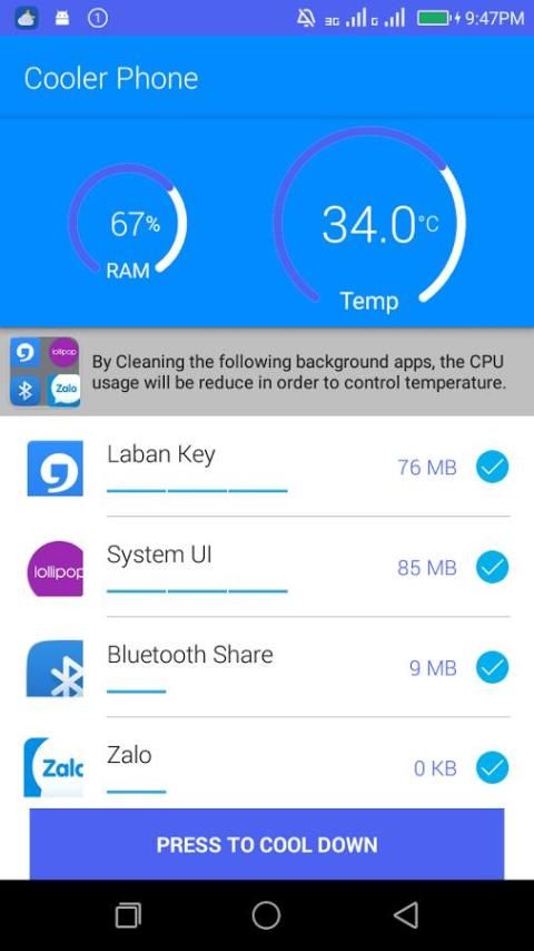 Cooler приложение CPU предотвратить CPU по нагреву при многозадачности и охладить ваш телефон.