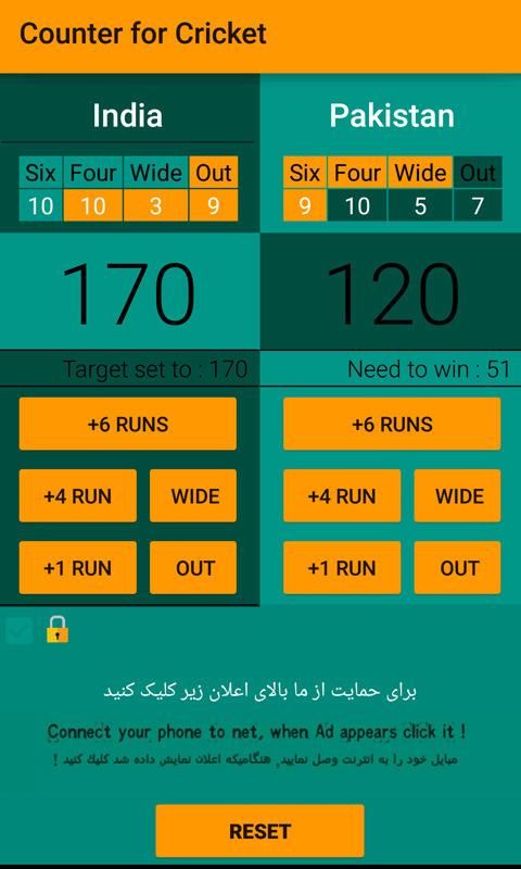 Counter for Cricket is released by Done Technology for cricket players and lovers with very simple and high graphic UI. This app lets you to count your cricket score like: 6 runs, 4 runs wide ball, Wickets, and more features that after installation you will see it.