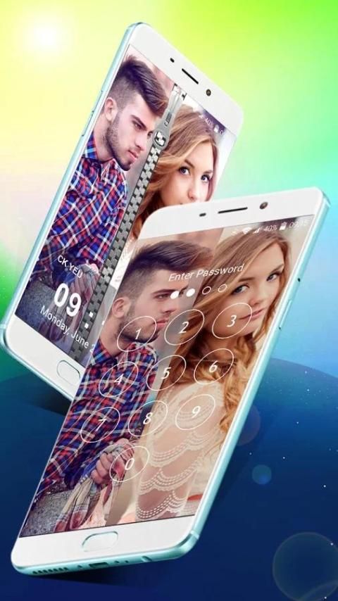 Выберите ваше и ваш любовник фото и установить его в сторону молнии блокировки экрана на стороне.