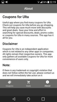 Coupons for Ulta Wholesale is an independent application which is not related to any other apps or companies. All rights remain their respective owners. This app only gathers all available Coupons for Ulta Wholesale for more convenience of users only.
