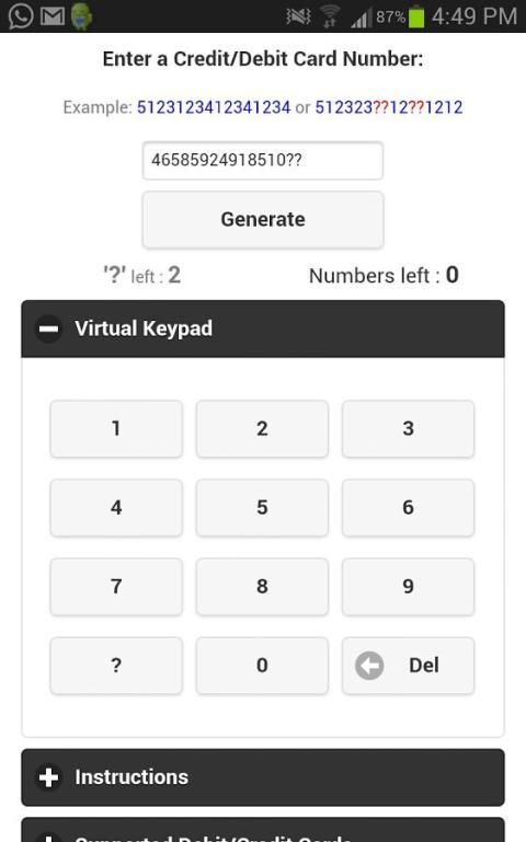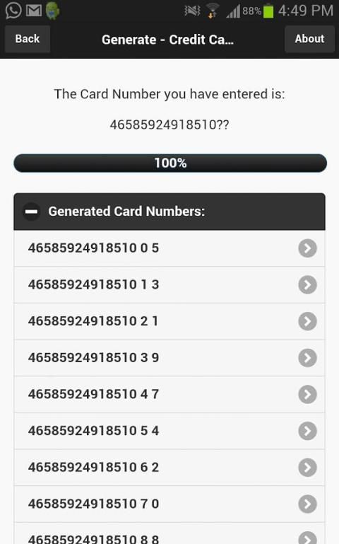 Вы хотите, чтобы найти и генерировать номера кредитных карт любого банка? Вы хотите, чтобы убедиться, кредитной карты? Хотите раскрыть подробности необходима кредитная карта? Теперь можно генерировать до 4 недостающих номеров кредитной карты. так, Попробуйте это приложение. Взломать кредитной / дебетовой карты с этим приложением.