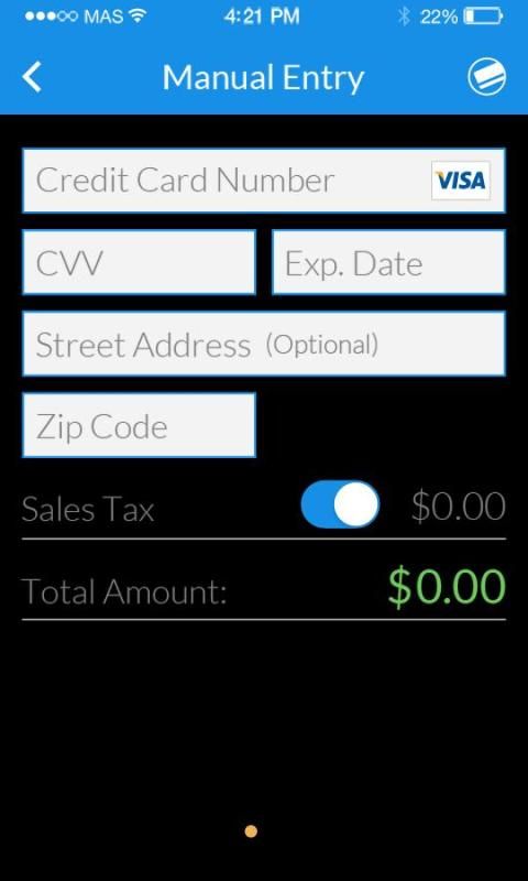 Прием платежей по кредитным картам в любом месте, в любое время. Приложение включает в себя бесплатный машина кредитной карты или кредитной карты читателя, который будет использоваться в качестве кассового аппарата для вашего Android устройства. Примите все основные кредитные карты, включая Visa, MasterCard, American Express, и Discover. Скачать сейчас, чтобы активировать торговый счет и начать получать услуги по обработке кредитной карты сегодня!