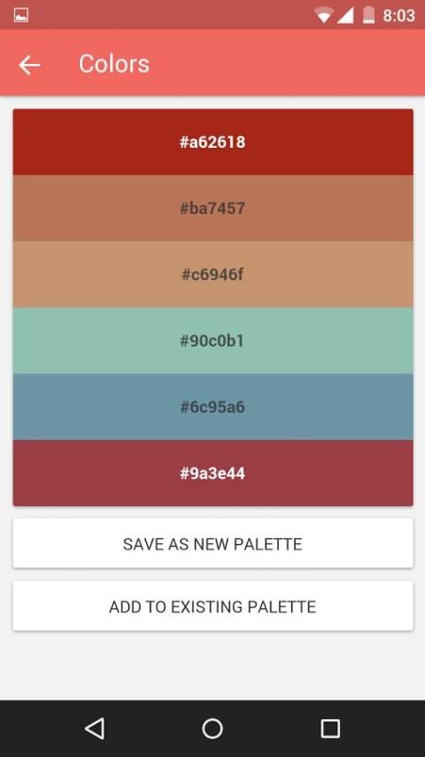 Автоматическое извлечение видных цвета с изображением из вашей галереи или камеры с нашей домашней алгоритма специально для цветовой палитры, или вручную выбрать любое количество цветовых расцветках с выделенным выбора цвета из вашей камеры.