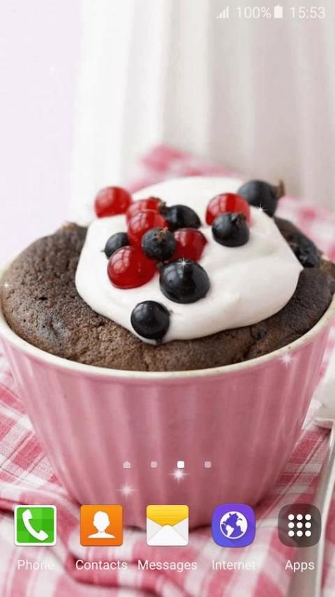 - "Сладкий Кексы Живые Обои HD" выглядит красиво на высоких телефонов разрешением и таблетки!