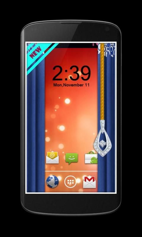 Забавное занавес отображает на экране блокировки, когда телефон заблокирован, и вы можете перетащить веревку, чтобы разблокировать телефон.