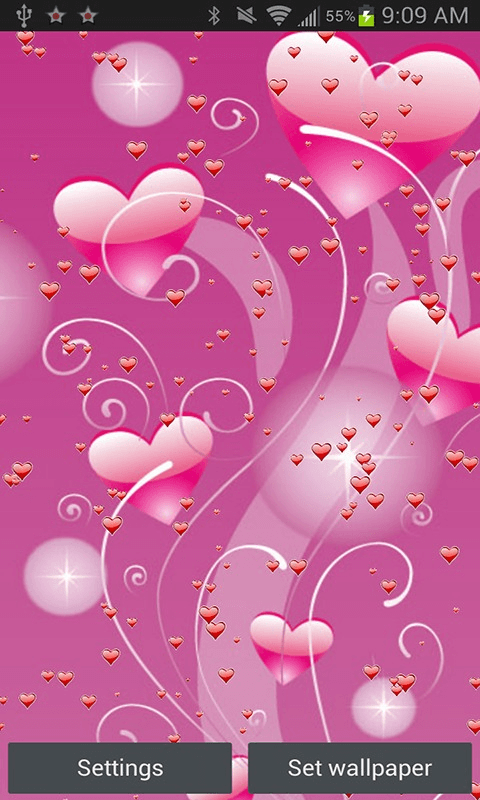 Download this free live wallpaper featuring a cute hearts background with little hearts that float by. Set the speed of the hearts under settings to your liking.