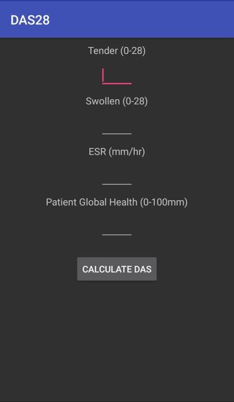 Простой и бесплатный DAS 28 калькулятор. Используйте переменные опух и Тендерный совместный подсчет, СОЭ и Patient Global Score для расчета DAS 28.