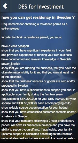 Наша компания специализируется на создании и регистрации компании, бизнес-структур, торговой недвижимости, юридических и бухгалтерских услуг, а также других консультационных услуг в Швеции. Наши клиенты всегда ищут новые возможности. У нас есть проекты бюджета низкие и высокие, которые могут достигать до 32% ROI, когда право возможность. Вот почему обновляется с шведском рынке недвижимости имеет первостепенное значение для наших клиентов. В нашем приложении мы будем информировать вас с последними свойствами, самый высокий возврат инвестиций в наиболее экономичным ценам. Мы также предоставляем информацию и услуги для создания компании, а также шаги, которые вам потребуется для успешного перехода к королевства Швеции.