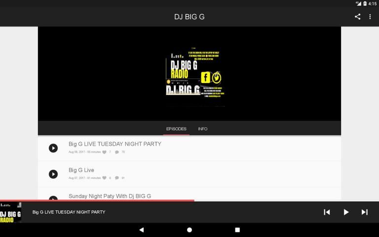 В прямом эфире и предварительно записанные шоу из Глазго на основе Dj Big G получить приложение сейчас и получите отличную музыку и общаться муравья день времени или ночь, и лучше всего ее бесплатно