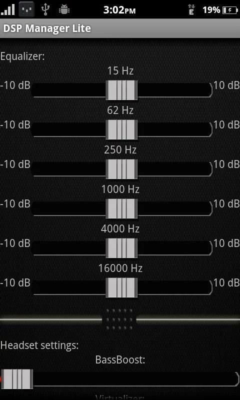 DSP Manager Lite является свободным и мощное приложение для обработки звука андроида. она поставляется с графическим эквалайзером, BASSBOOST, и виртуализатором. На 2x эквалайзер в бета-тесте, он может не работать на вашем устройстве.