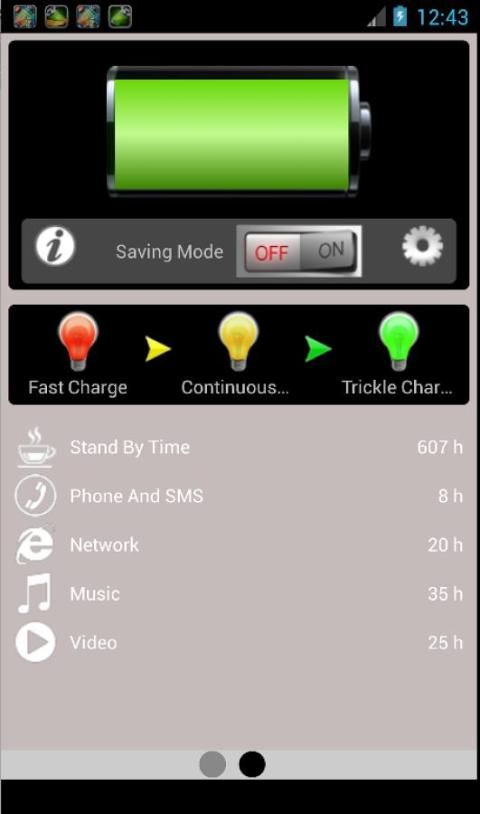 С Battery Saver, каждый раз, когда и везде вы будете знать, если ваша батарея имеет достаточно, чтобы играть в игру, кино или просматривать веб-страницы.