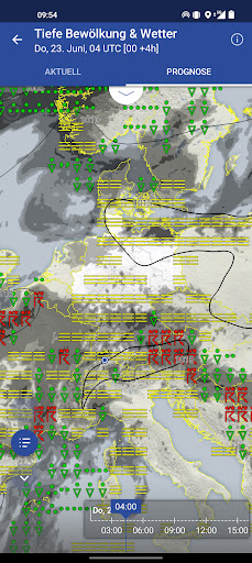 - радиолокационные изображения с высоким разрешением (Европа- составной) > -Wawfor Model прогнозы (прогноз World Aviation Weather) на основе иконка прогноза DWD для регламента Ионная Европа для прогнозируемого периода до 48 часов. Следующие прогнозирующие параметры доступны на дисплее интерактивного карты: