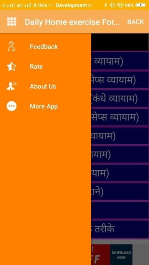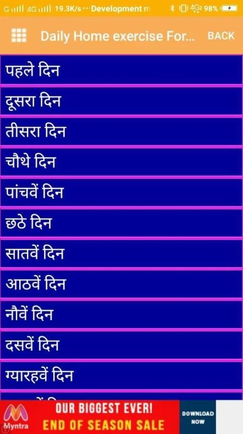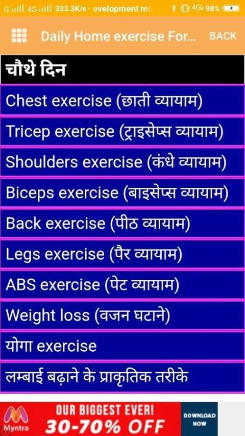 В этом приложении Фитнес вызове 21 дней- Daily Главные упражнения на хинди в хинди различных этапах тренировки упоминаются, которые помогут вам улучшить свой уровень физической подготовки. Все инструкции на языке хинди и легко следовать. Это приложение, как вызов тренировки, которая поможет вам держать заниматься делать то, что вы любите делать, и его достижения в наименьшее время. Фитнес-урод люди обязательно должны иметь это приложение, как это будет, как получить обучение от эксперта. В этом приложении, различные методы, чтобы освободить ваш вес тело ЭТИХ, бедро, бедро, приклад и т.д. объясняются. Упражнения продемонстрировали шаг за шагом из-за которой вы будете чувствовать себя помолодевшим и счастливым. Особенности этого приложения следующим образом.