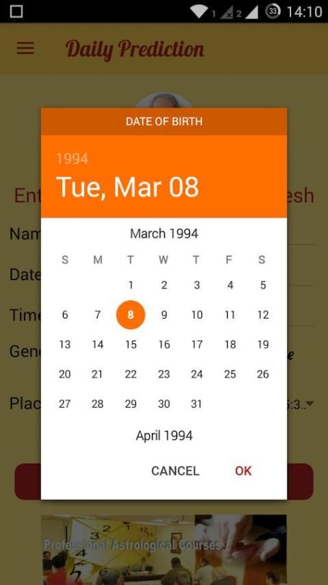 Получить ежедневный прогноз, основанный на дату рождения, время рождения и место рождения.