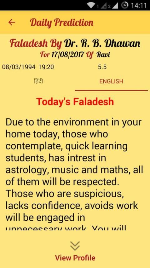 App для автономного ежедневный гороскоп Calc & Предсказания доктора Р. Б. Дхаван Гуруджи