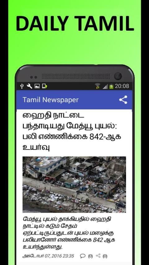 Вот некоторые новости для вас, чтобы узнать больше информаций об одном из лучших приложений для андроид. 20,000+ пользователи скачали последнюю версию Tamil Newspaper в 9Apps бесплатно каждую неделю! Вы будете чувствовать весёлье, когда начать играть. Это горячее приложение было выпущено в 2016-10-09. Найти больше программ, которые вы искать в 9apps.com.