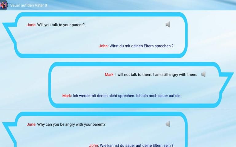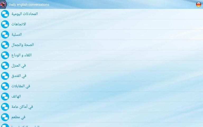Ежедневно английский диалог является полезным приложением, чтобы практиковать диалоги на английском языке для всех, где приложение имеет более 400 разговоров на английском языке включает в себя все аспекты жизни содержат и была переведена на арабский язык и Германии.