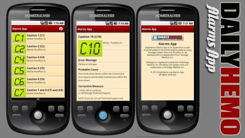 После выполнения диализа на дому за прошлые несколько лет я понял, что это был его стресс, особенно с потоком процесса при работе с технологическими проблемами при диализа. Я, наконец, решил улучшить по крайней мере часть процесса создания этого быстрый поиск тревог NxStage приложение для пользователей системы в домашних условиях. Нет больше вы будете иметь дело листать страницы с помощью руководства пользователя. Самое замечательное это то, что вы даже не будете двигаться ваш доступ руку так много при использовании этого приложения. Иногда пациенты потеряли или неправильно их инструкции, но те из вас, Android смартфонов, что всегда носите телефон с ними везде так DailyHemo Сигнализации App идет с вами везде вы идете. Если у вас есть вопросы, пожалуйста, следуйте за мной на Twitter ..